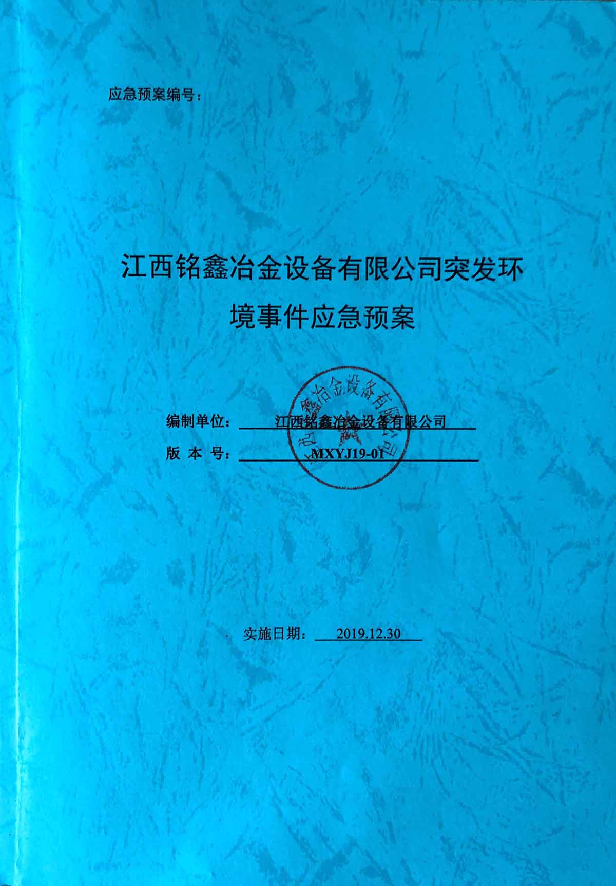 江西銘鑫冶金設備有限公司突發環境時間應急預案